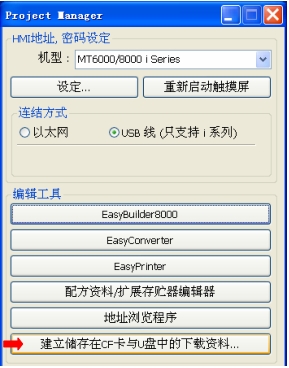 MT8000/6000可以通過U盤/SD卡/CF卡下載畫面程序到機器。以下以U盤下載為例說明操作步