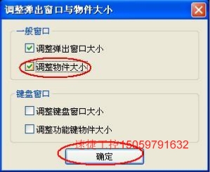 4、選中相應的型號后,點“確定”按鈕,彈出“調整彈出窗口與物件大小” 窗
