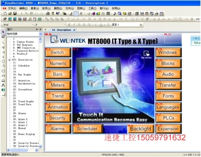 1、 下圖為轉換前的程序畫面,其型號為 MT8056T(320×234)。